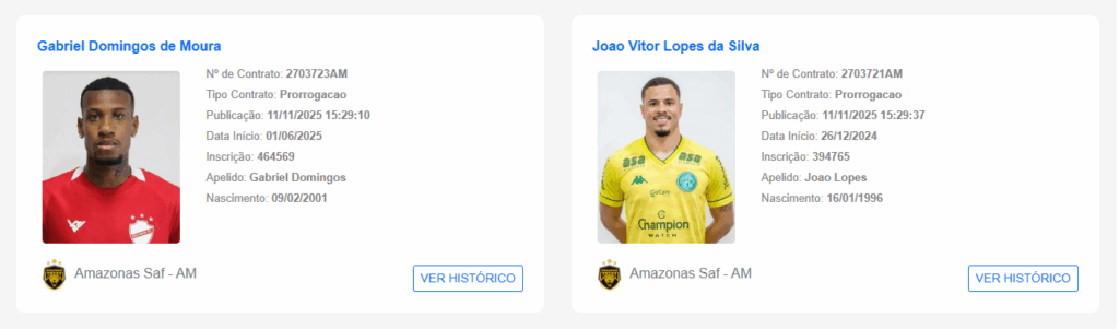 Em meio ao iminente rebaixamento à Série C, o Amazonas FC continua seu planejamento para 2026. Na última terça-feira (11), o clube registrou no BID da CBF as prorrogações de contrato do goleiro João Lopes e do volante Gabriel Domingos, que permanecem no elenco para a próxima temporada.