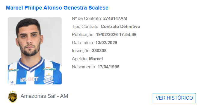 O Amazonas FC selou a contratação do zagueiro Marcel Scalese, de 29 anos. O nome do defensor foi publicado no BID da CBF nesta quinta-feira (19). Já em Manaus, ele está liberado para atuar.