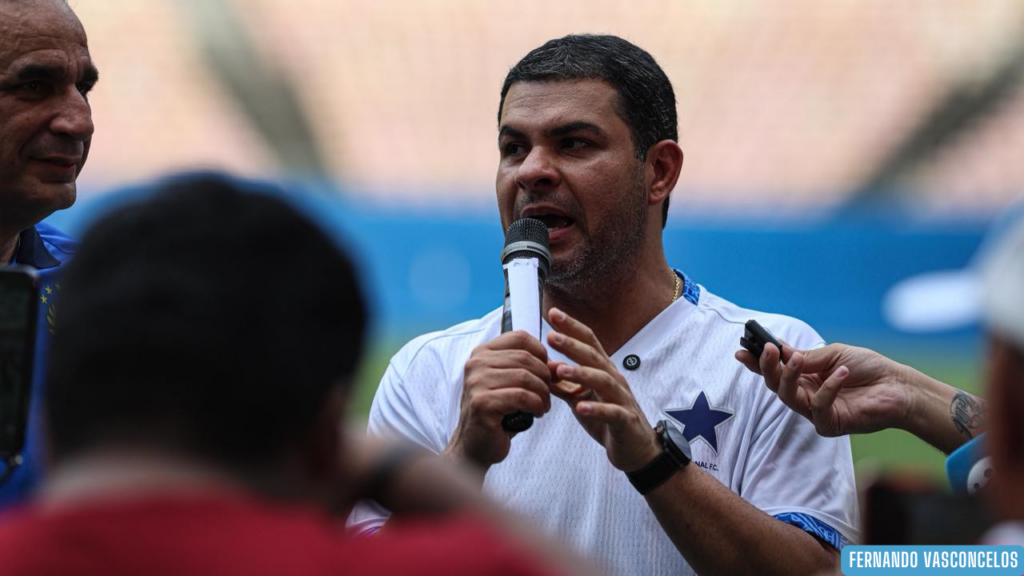 19 de abril de 2026Venda de novo uniforme e lançamento de corrida do Naça foram reveladas pelo presidente do clube, Saullo Viana, em coletiva de imprensa antes do duelo diante do GAS-RR