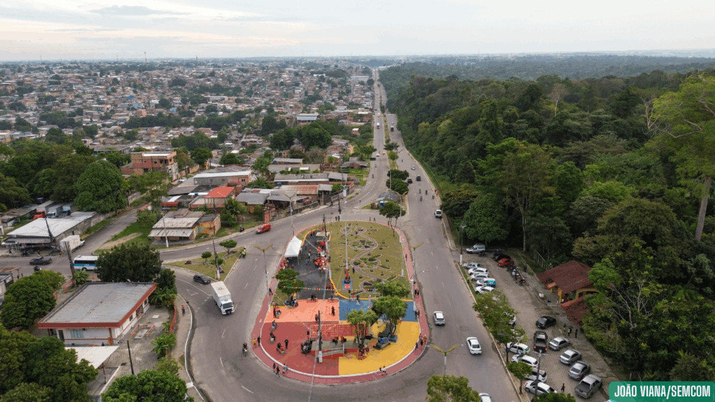 A rotatória em frente ao Museu da Amazônia (Musa), no coração do bairro Cidade de Deus, zona Norte de Manaus, virou praça. Onde antes havia mato, abandono e escuridão, agora há pista de caminhada, espaço para zumba, área de convivência e até academia ao ar livre.
